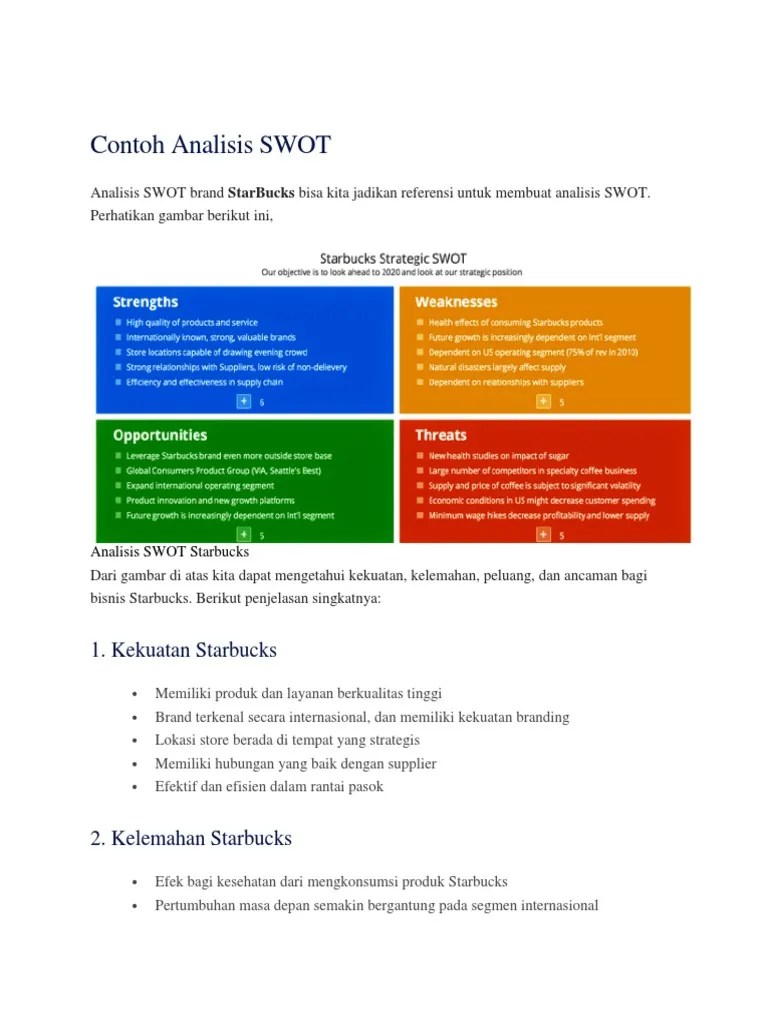 Swot sendiri merupakan singkatan dari strength (kekuatan), weakness (kelemahan), opportunities (kesempatan), dan threats (ancaman).